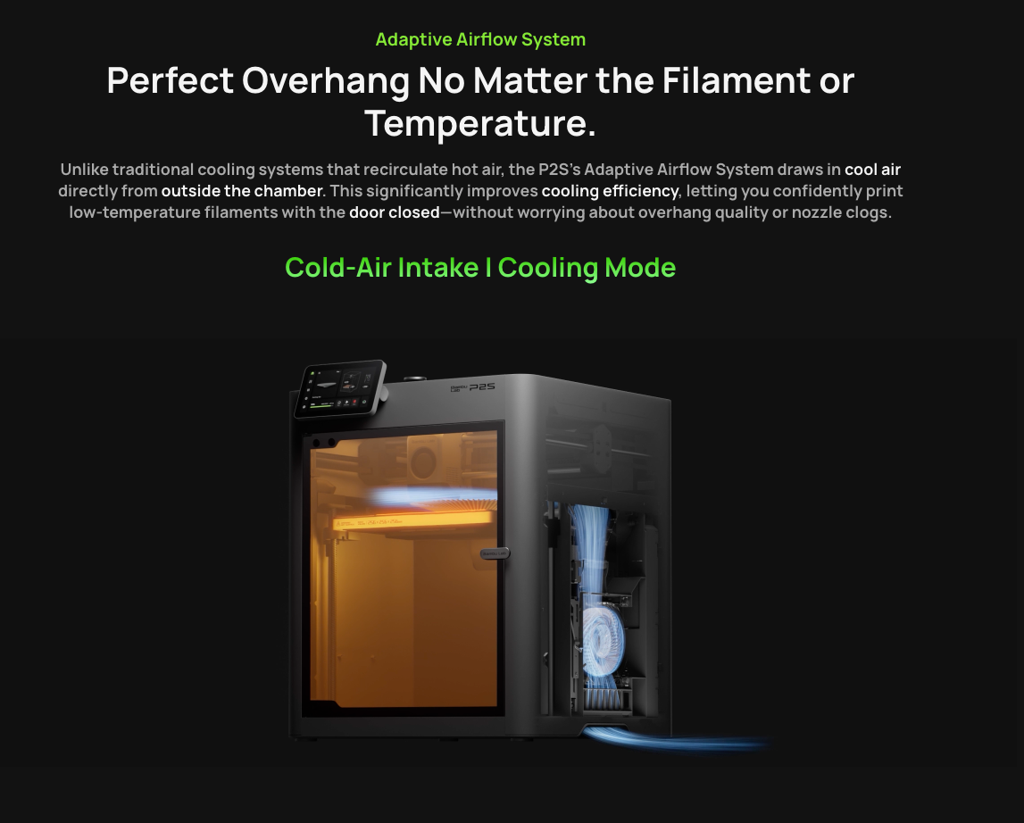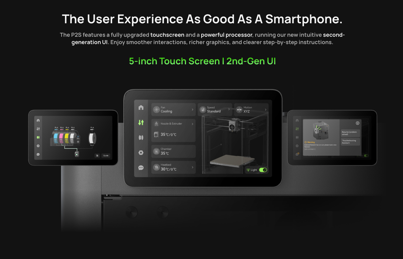 The P2S lands in that sweet middle spot — loaded with advanced tech, still within reach for hobbyists and small businesses. The base model is competitively priced, and the AMS combo version brings full multi-material performance without breaking budgets.