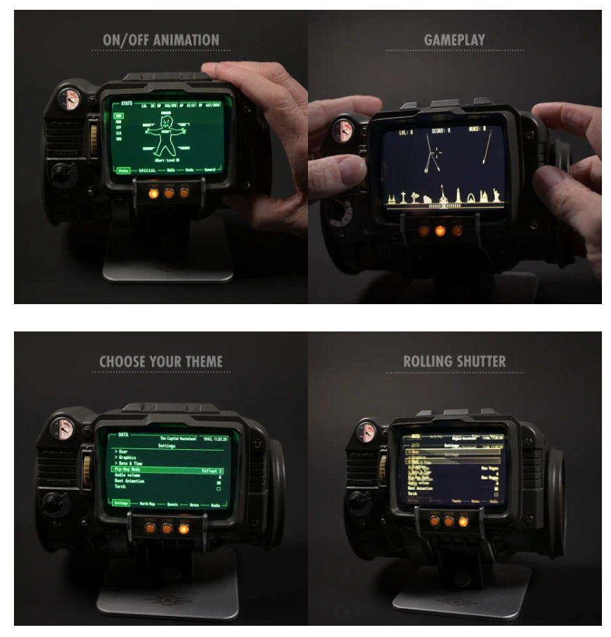 This isn’t just a display piece. It’s a supremely accurate die-cast metal and injection-molded ABS device, wrapped around a memory-foam cuff that slides onto your arm like the real thing. Fire it up and the IPS LCD screen loads nearly every piece of in-game content, menus, stats, animations, the whole vibe, rendered exactly as your vault dweller would see it.