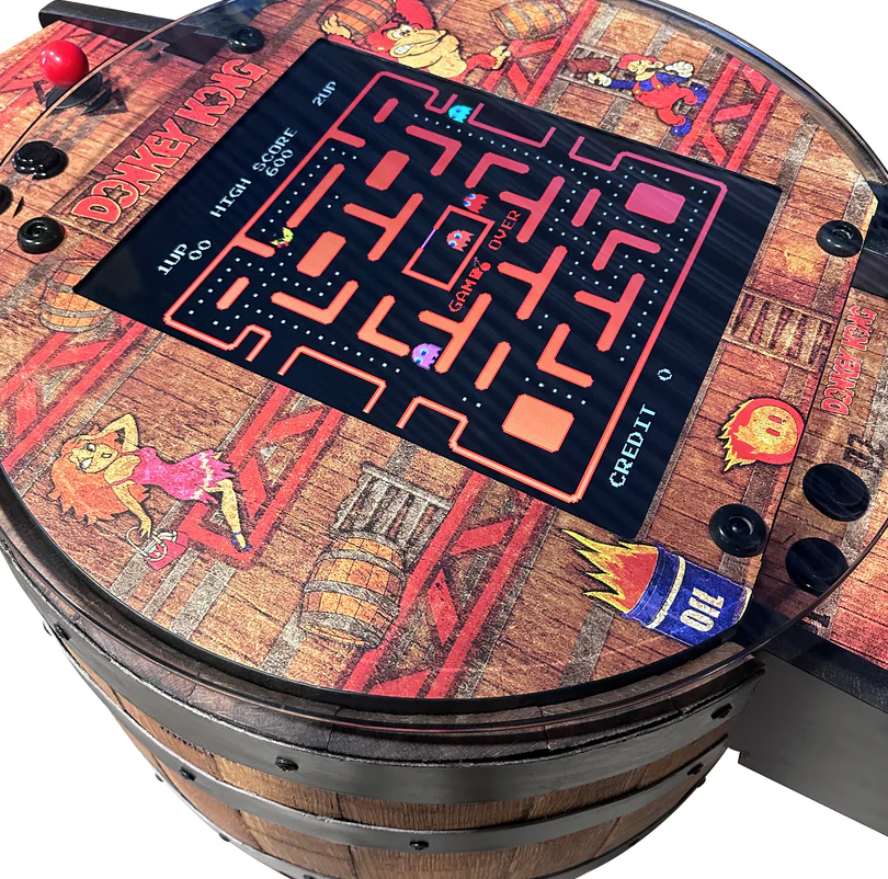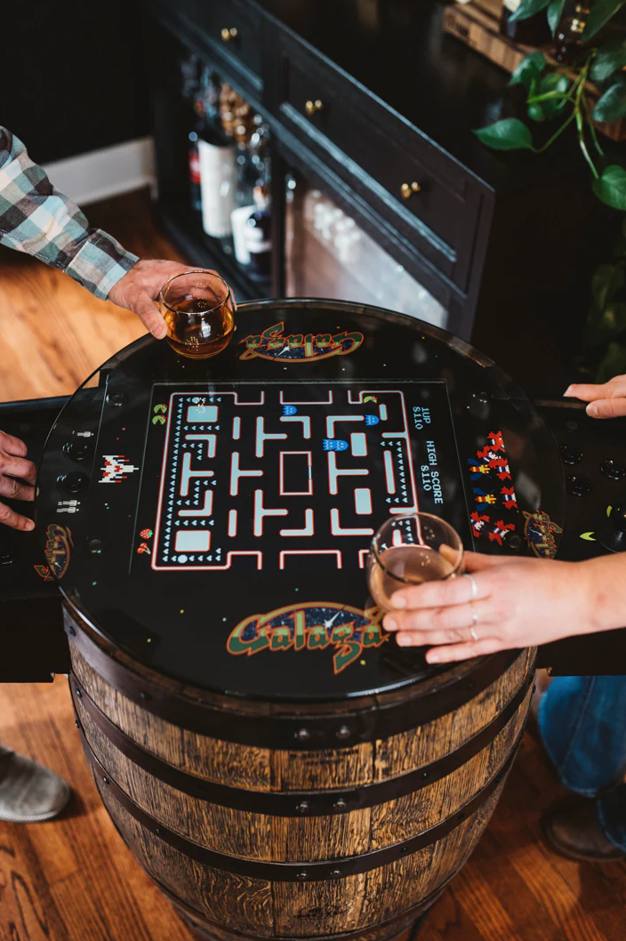 Motor City Barrels is known for transforming reclaimed whiskey barrels into furniture, décor, and now — a gamer’s dream. Each arcade is handcrafted from an actual whiskey barrel, giving it a one-of-a-kind grain pattern and finish. The wood still carries the soul of aged bourbon, now infused with the glow of 8-bit adventure.