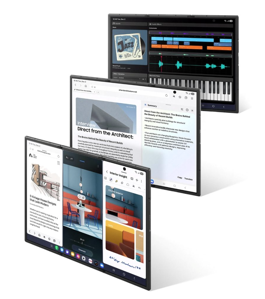 The Galaxy Z TriFold is designed for creators, doers, and power users who demand more — more screen, more capability, more control. Run complex projects across simultaneous apps. Use AI to redesign your room, rewrite your work, or re-edit your photos with generative tools that scale perfectly across the massive display. Or kick back and enjoy a pocket-sized movie theater that unfolds into an epic entertainment canvas.